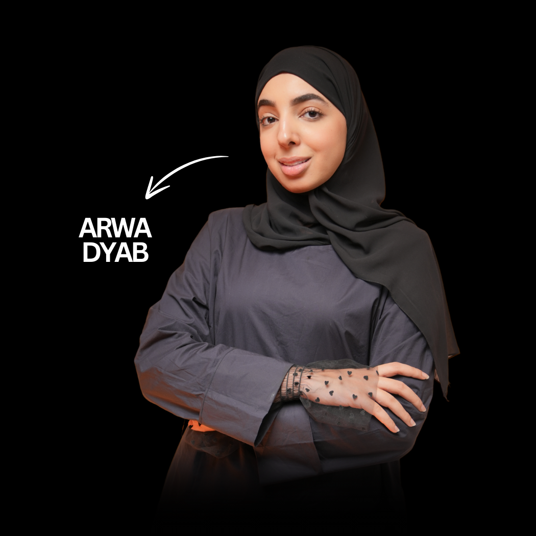 I’m Arwa Dyab, a young Arab woman who has carved out a special place for myself in the world of content creation. I graduated from the College of Business Administration, but my true passion began back in high school, when my voice and presence stood out in school radio and voice-over work.